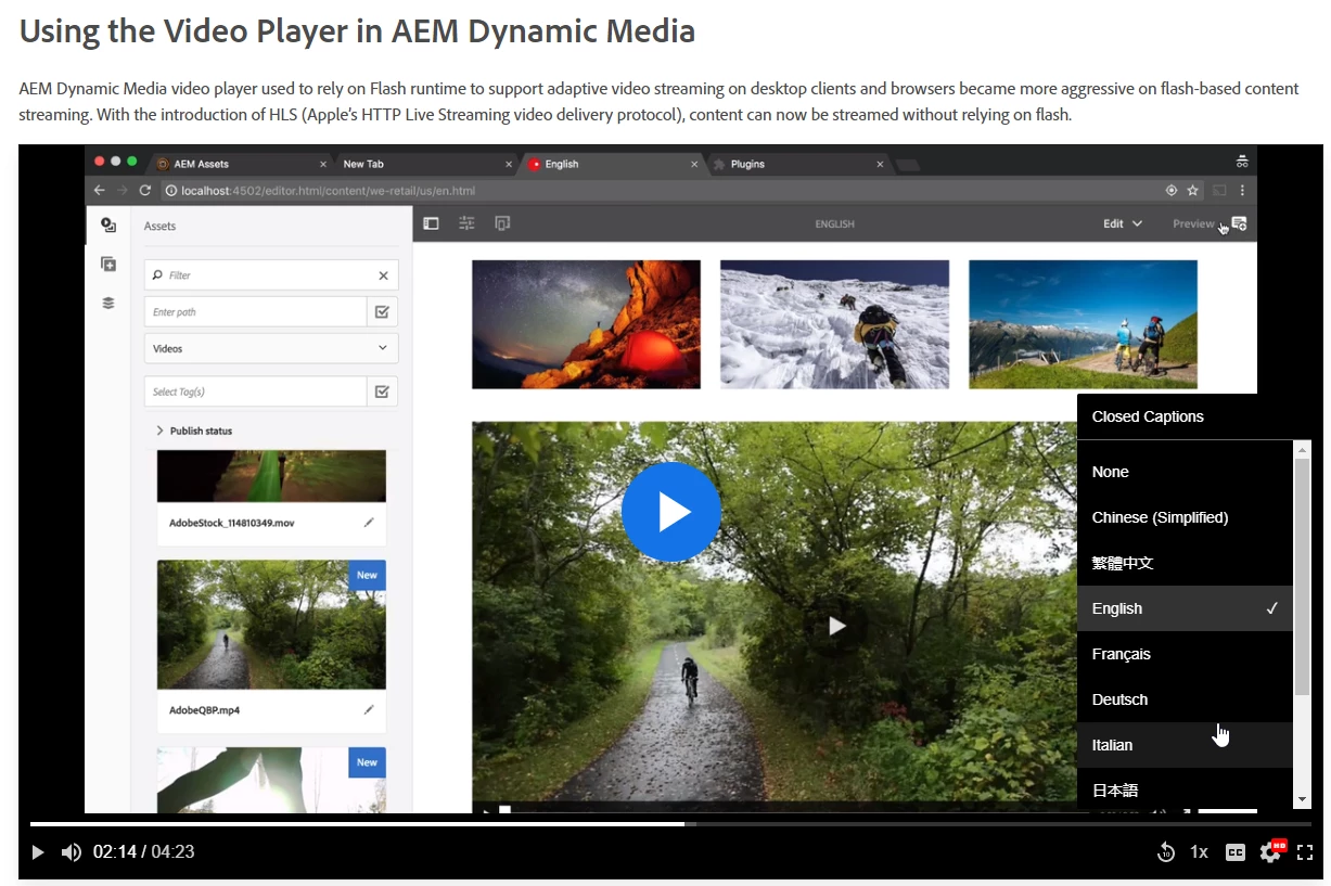 The video player on Adobe's own documentation for the video players support multiple languages for close captions: