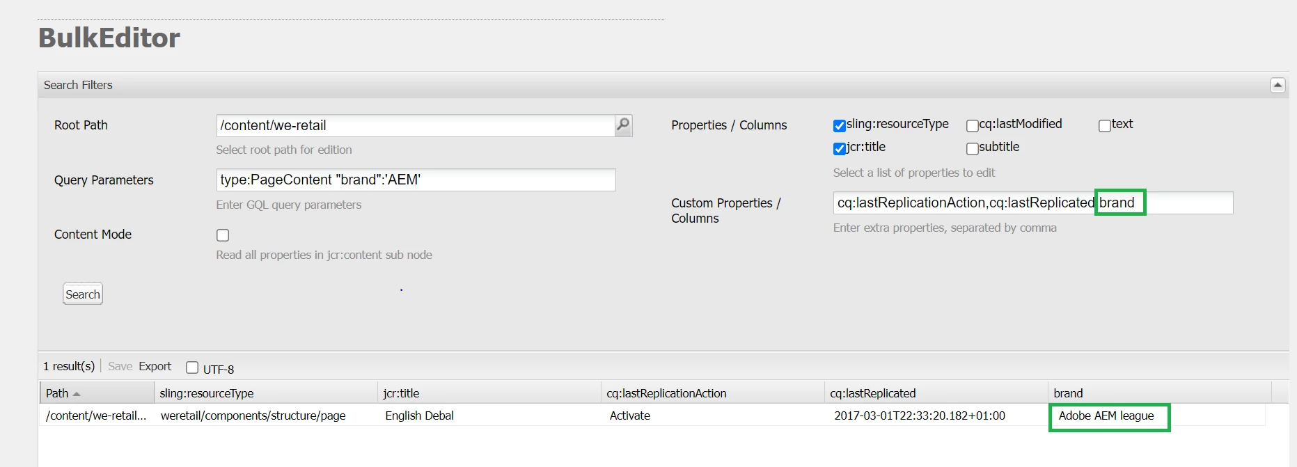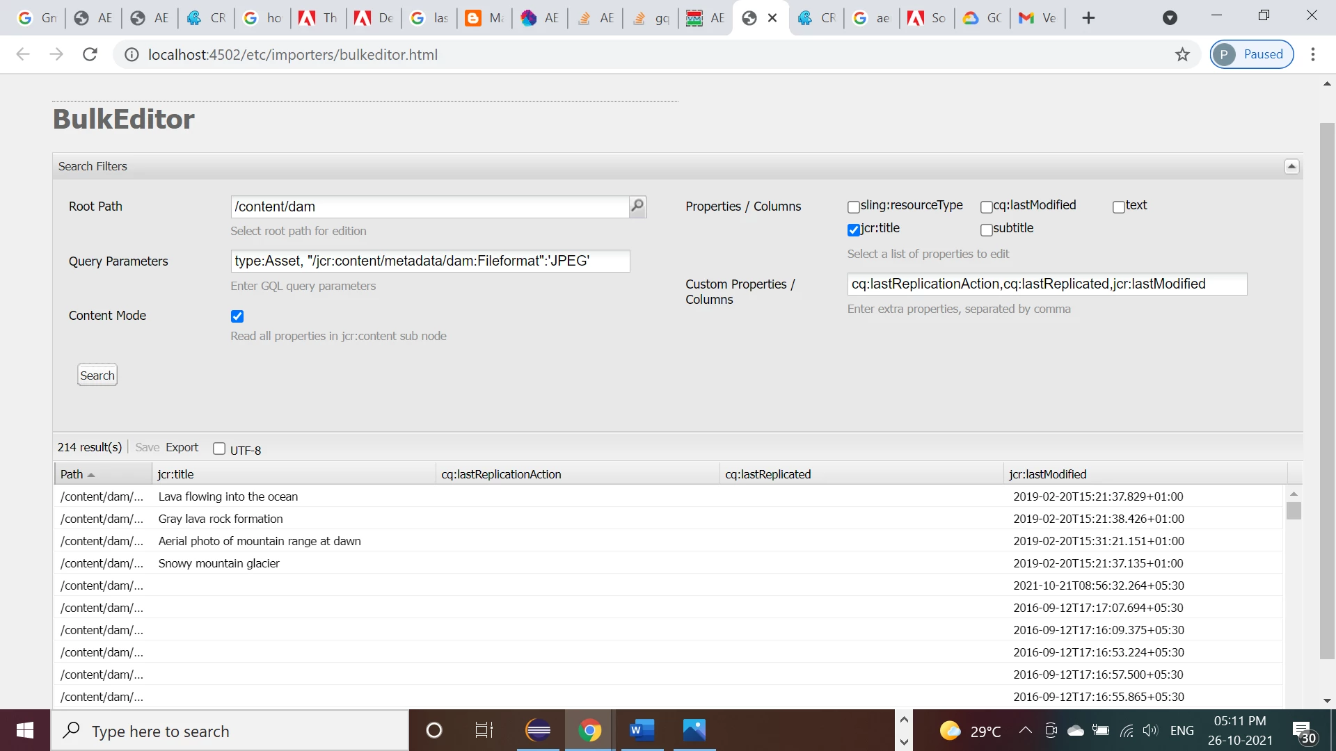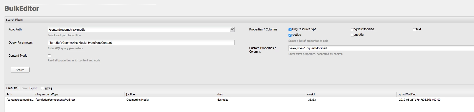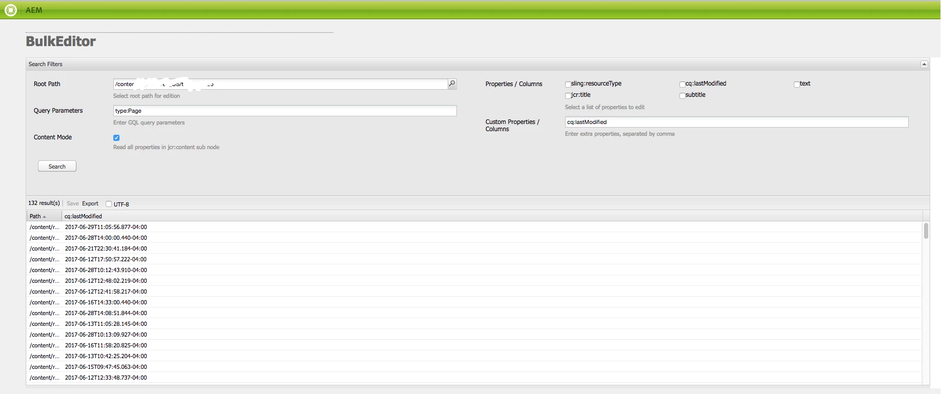 Entering cq:lastModified as column