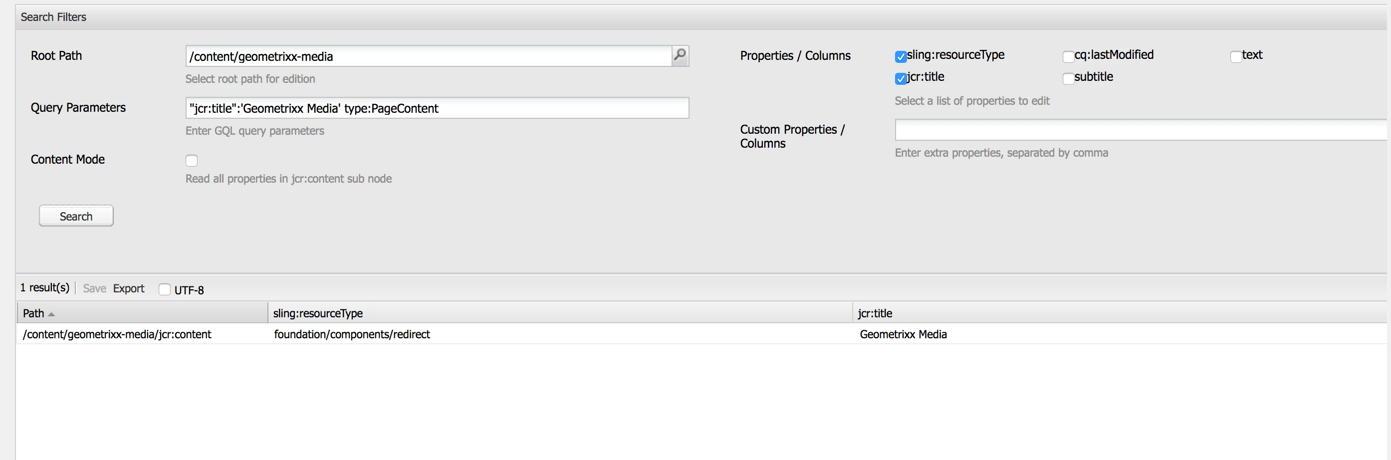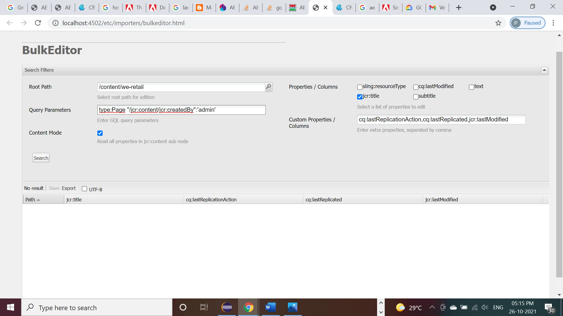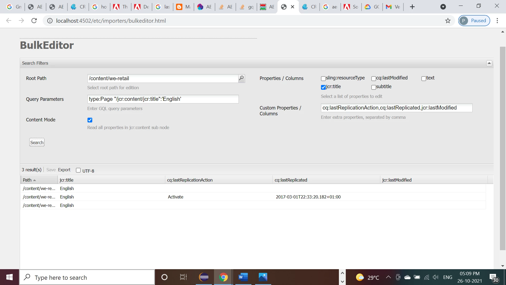 Entering cq:lastModified as column