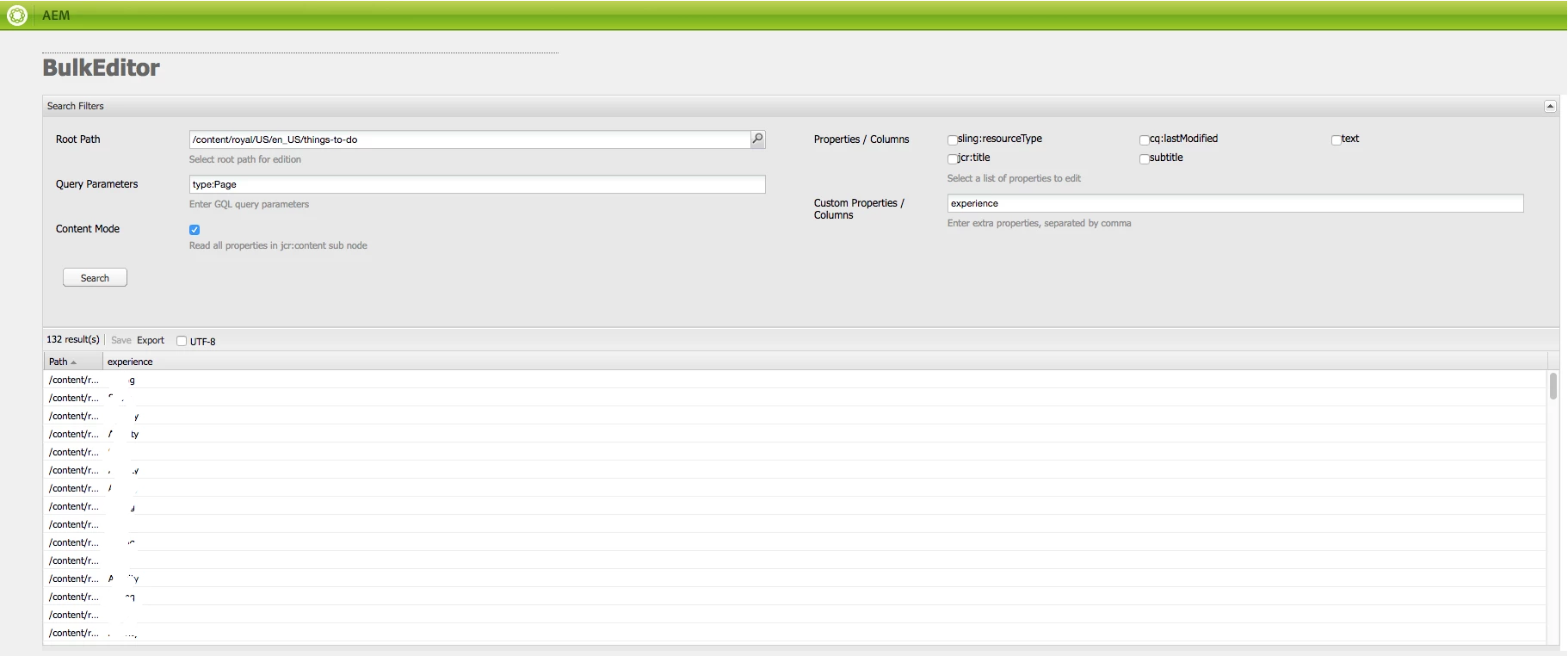 Example: when I enter type:Page only it returns values; when I enter experience:XXX only, it returns values as well... when I enter them both, it fails and returns no result. To enter both parameters, I've tried all combinations I can think of: