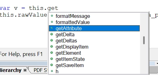 Now, I have seen the code where var v = this.getField("ListBox1"); but the issue is I dont have this functionality(this.getField) in my adobe livecycle designer.Attached ss of not having functionality. so can you pls provide js or any solution through which I can resolve this.