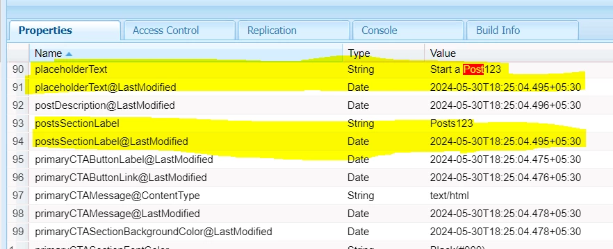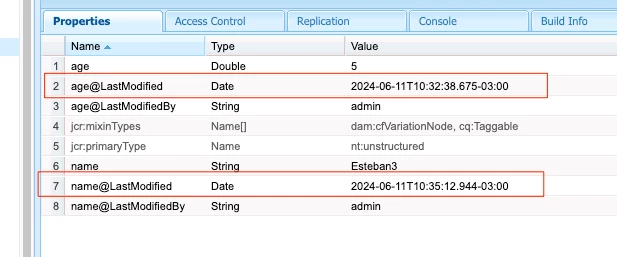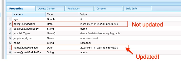 Now if I am updating any content in the Content Fragment Model then all the section lastmodified date is updated with the same date , as shown below.