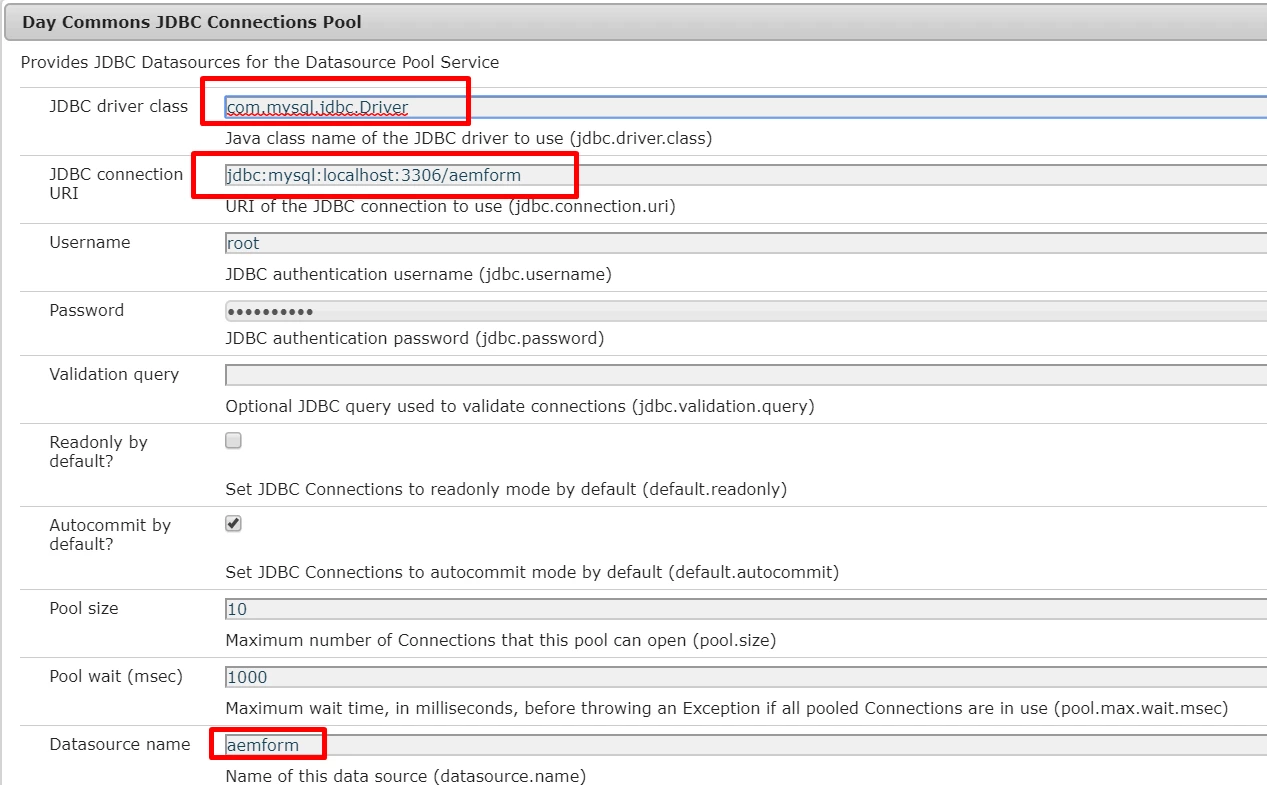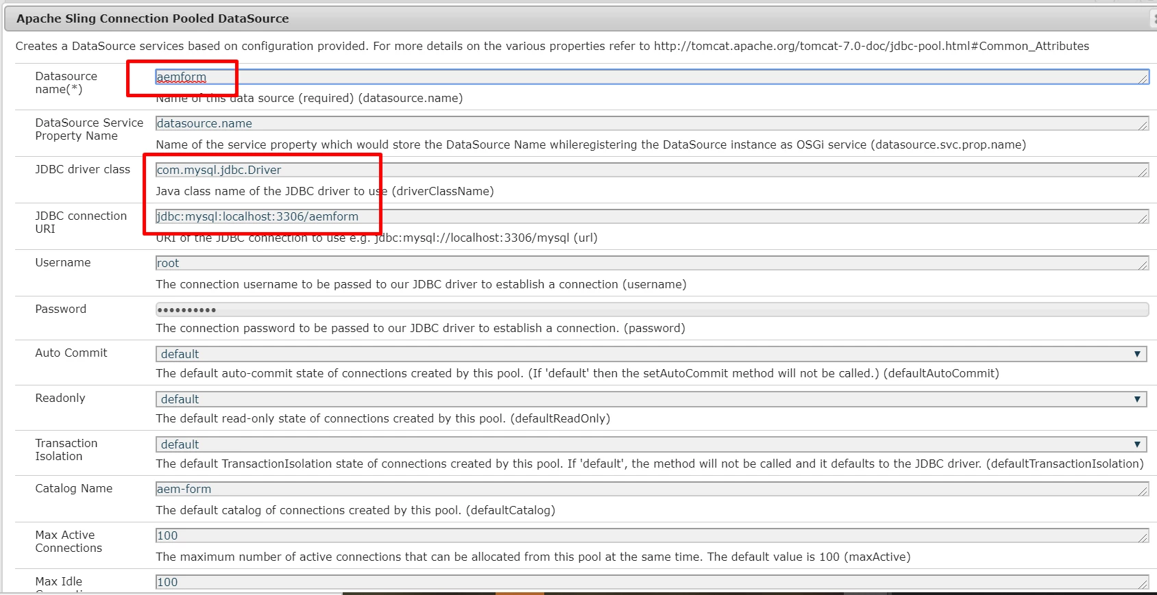 Now , when I do same configuration using "Apache Sling Connection Pooled DataSource". I do not get "Connection Done" output from JSP , I mean connection is not getting established .