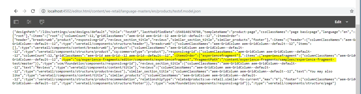 Need to read/export json of experience fragment