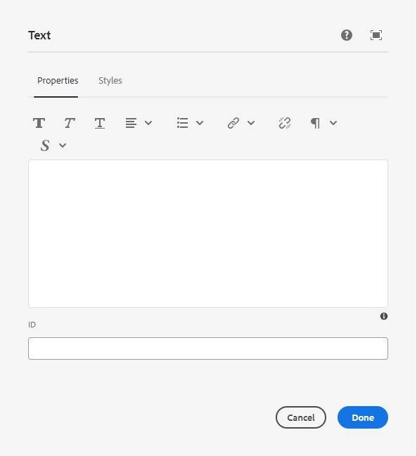 Hi Team, Currently I am working on a AEM cloud based project. In my project we are currently using a customized text component which had a color picker plugin using which content author is able to use while authoring the text (RTE) component. Currently the color picker is visible only when the RTE dialog is maximized view (refer image-1). But the new requirement is to make the color picker should be visible when the RTE is normal view (refer image-2). Please find the attached screenshot and let me know.