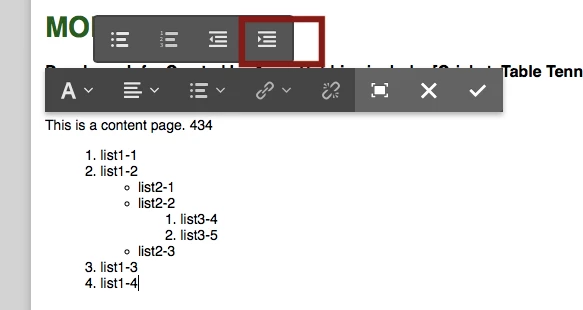 Currently working in AEM 6.3 ENV and have a requirement to add nested lists in RTE plug-in. I have gone thru some of the online documentation and below lists available for RTE