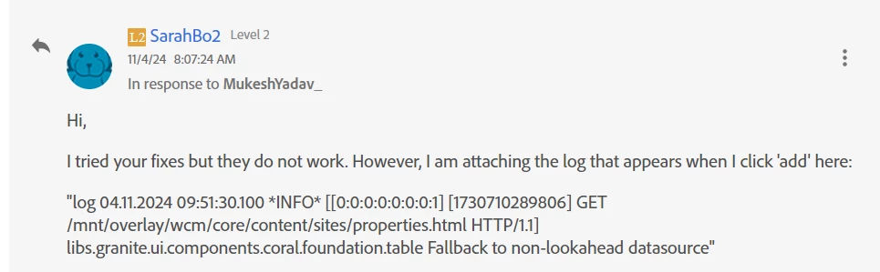 I already applied the fix you suggested in this ticket : https://experienceleaguecommunities.adobe.com/t5/adobe-experience-manager/complex-nested-multifield-not-allowing-to-add-more-items/m-p/406328