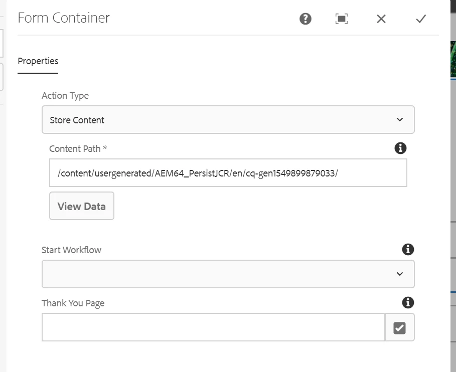 No advanced options in form container settings
