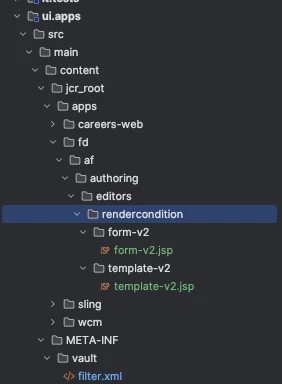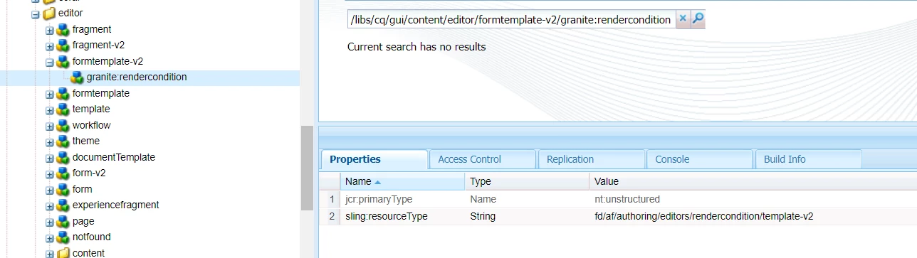 I can't find resource fd/af/authoring/editors/rendercondition/form-v2 and fd/af/authoring/editors/rendercondition/template-v2 in /libs/fd/af/authoring/editors/rendercondition node, please have check and AEM version 6.5.17.