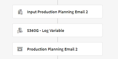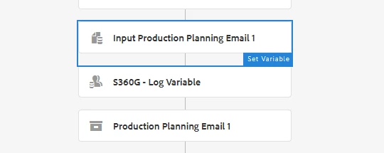 Later on, in the workflow, I have the same to Set Variable and Container Step, but they are named differently. In the Input Prod Planning Email 2, I have the same mapping as Input 1, and Production Planning Email 2 as the same sub-workflow as Production 1.
