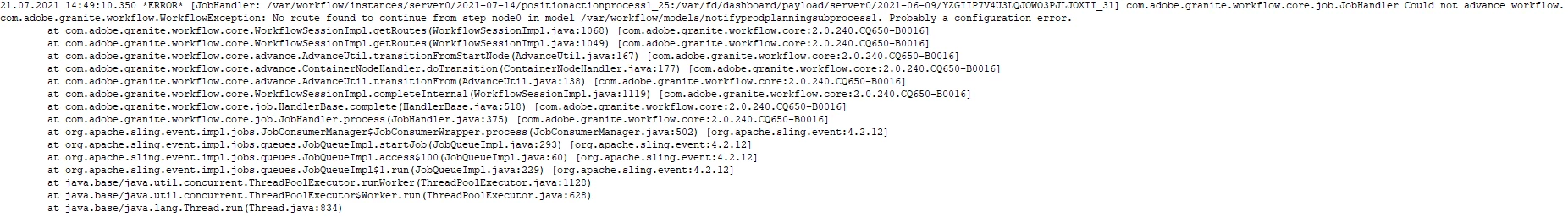 No route found to continue from step node0 in model /var/workflow/models/<nameOfWorkflowModel>. Probably a configuration error.