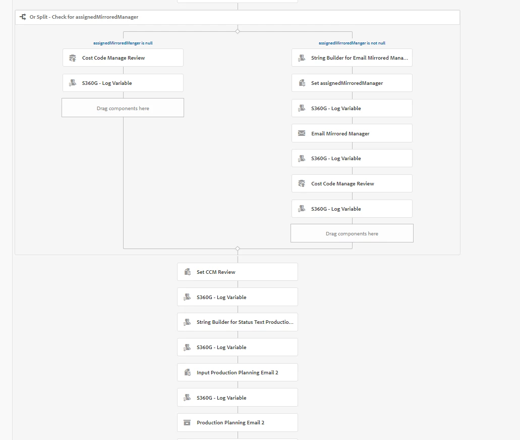 I'm having trouble calling a sub-workflow process in my main workflow. To give some context, for every container step I use to call another workflow, I use a Set Variable to set some specific variables I used on the sub-workflow. As you can see in the picture below, I have the Set Variable named Input Prod Planning Email 1 and then the Production Planning Email 1. Here the workflow is working as expected.