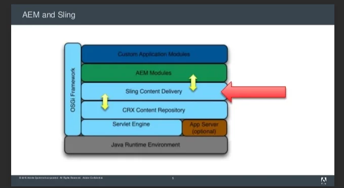 | JCR Assumes - Everything is content (Nodes) | Sling Assumes - Everything is Resource. Sling maintains a virtual tree of resources. |