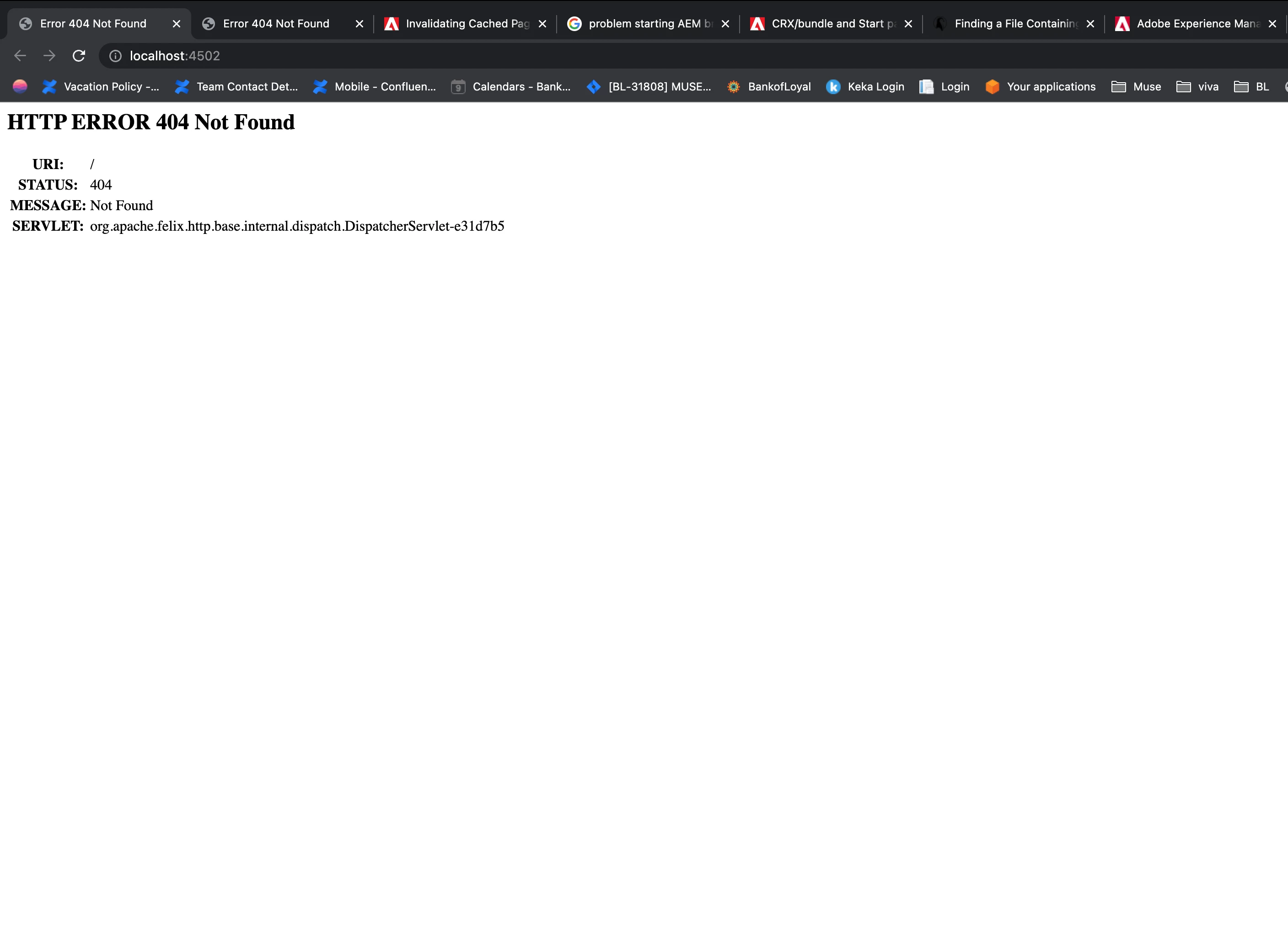 MESSAGE:Not FoundSERVLET:org.apache.felix.http.base.internal.dispatch.DispatcherServlet-e31d7b5