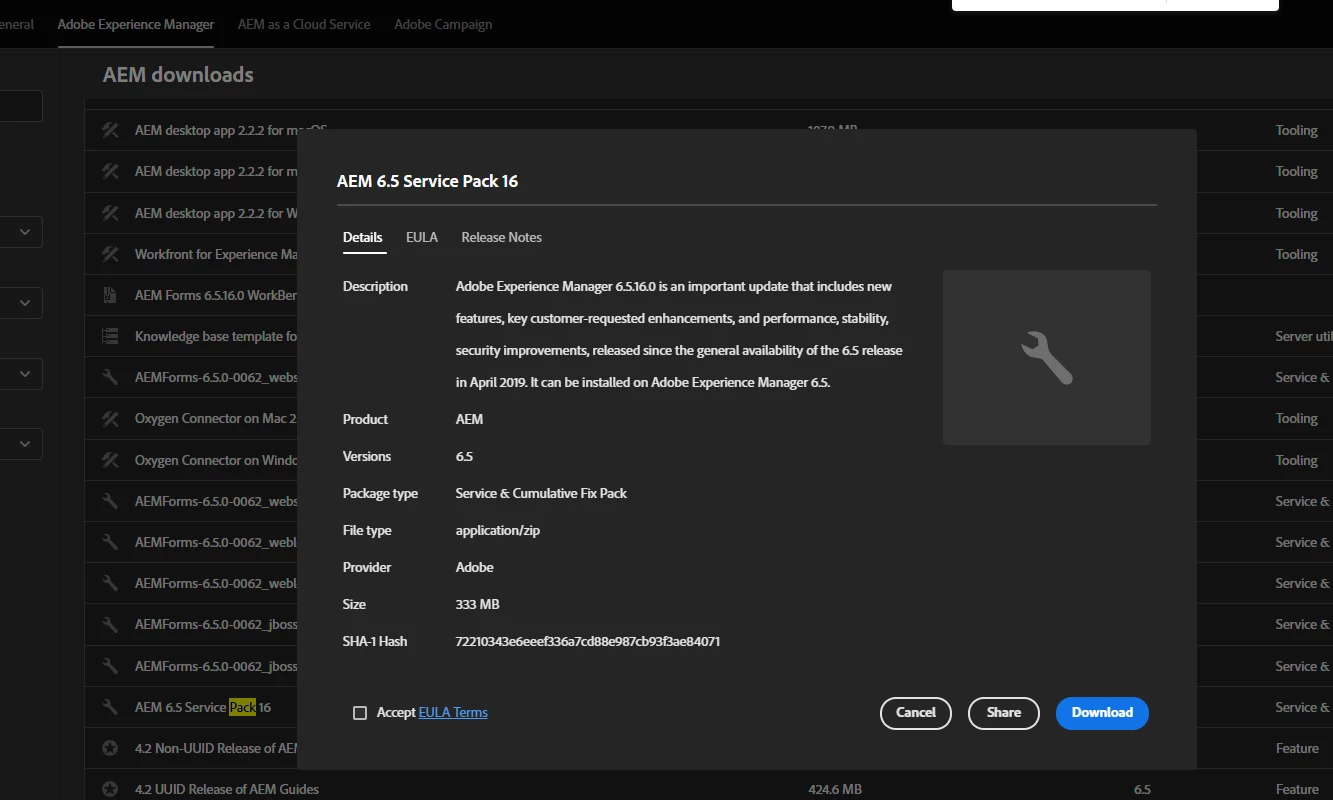 Not able to download AEM service package 6.5.16
