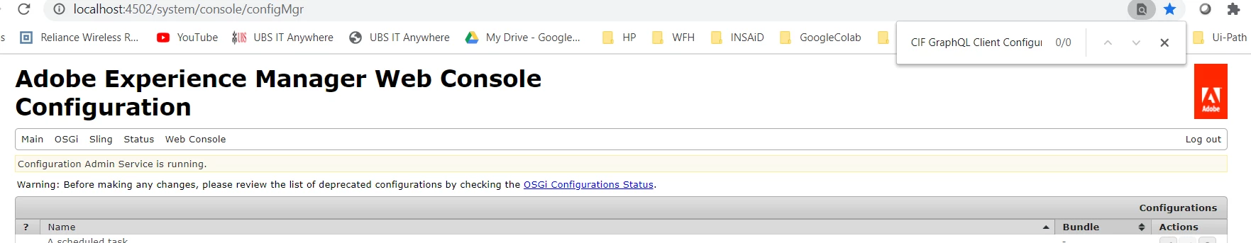Not able to find CIF GraphQL Client Configuration Factory on the web console