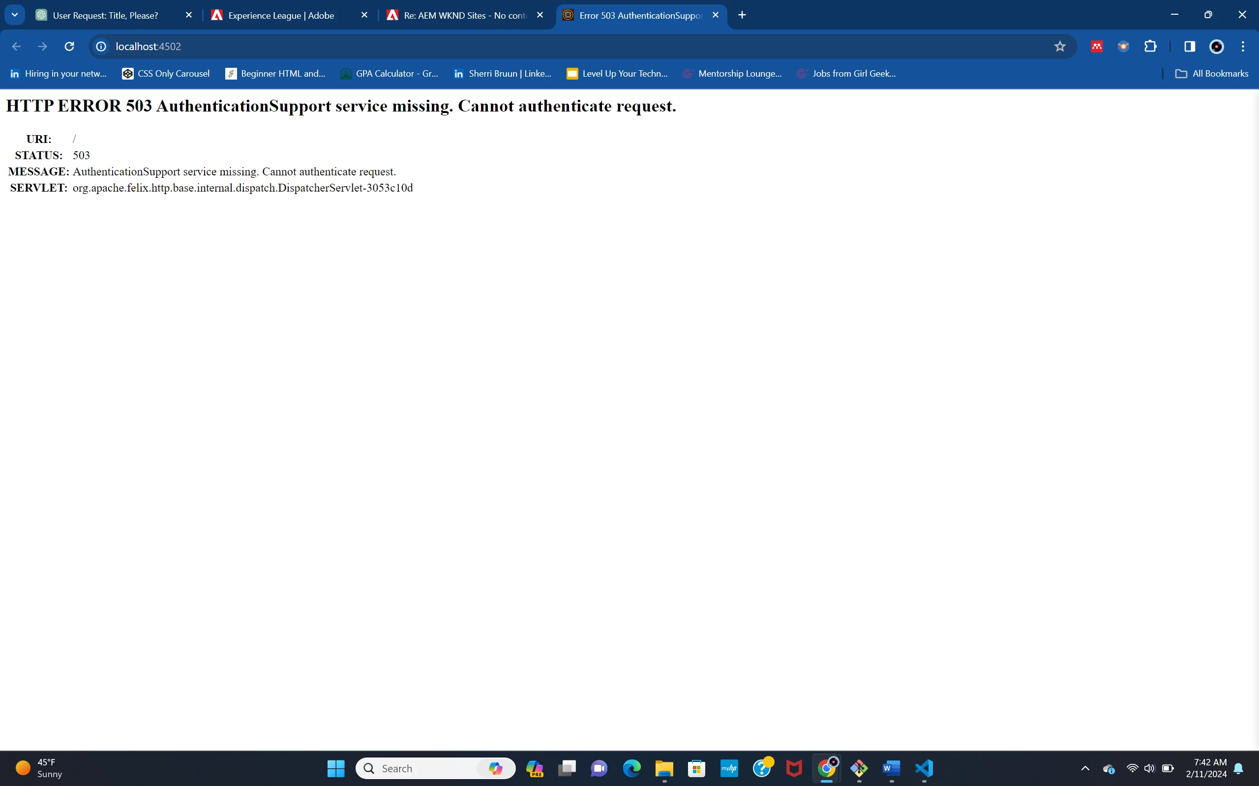Not able to handle this error for AEM6.5
