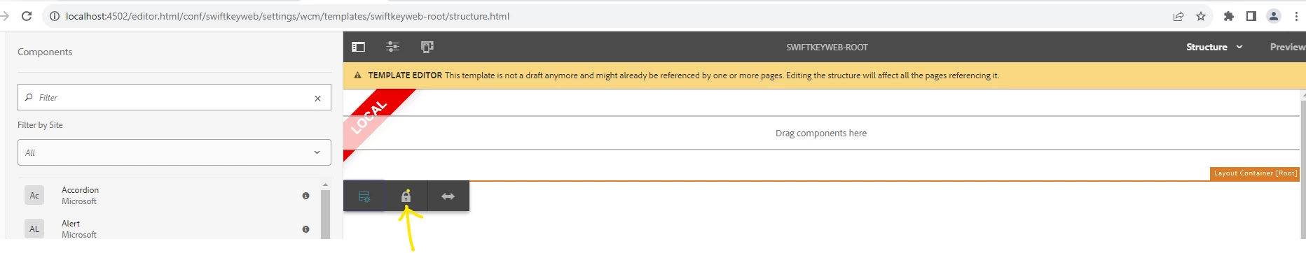 Not able to unlock template layout container (both root and any custom templates) after publish via sling job.