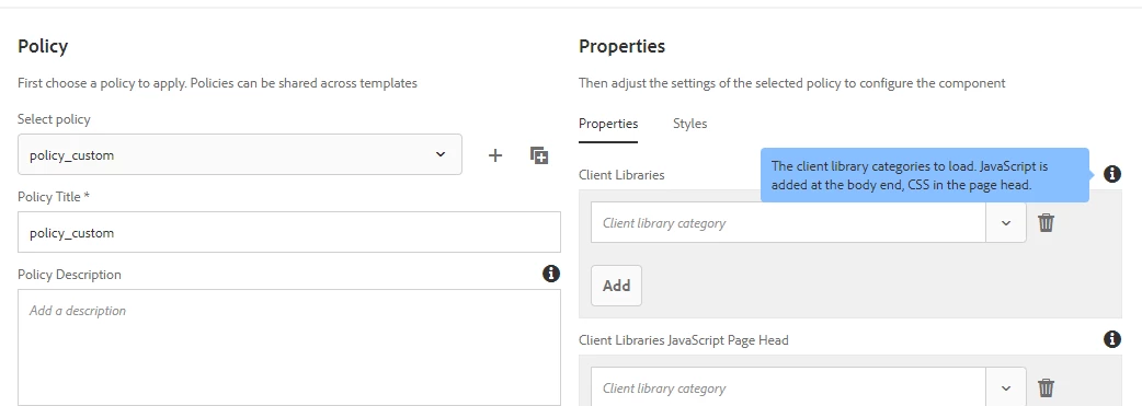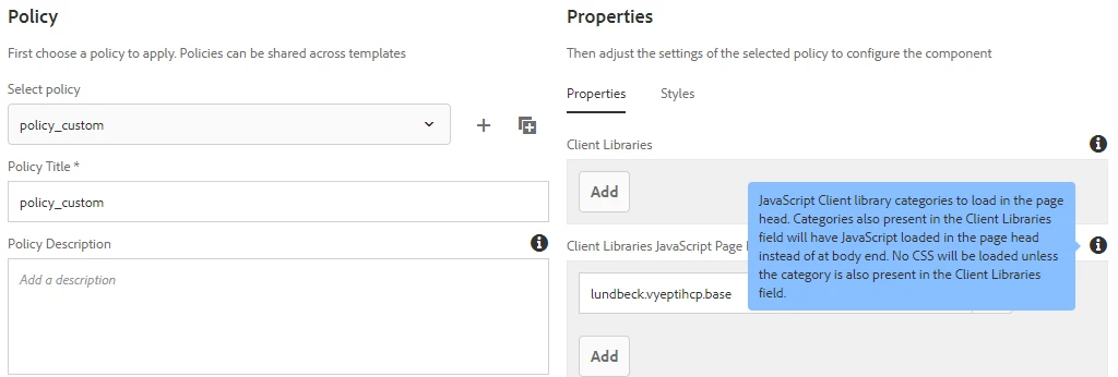 My problem is that when I create a page with the editable template and related policy it loads "only" the style of the client librarie "myproject.a" and not of B and C.