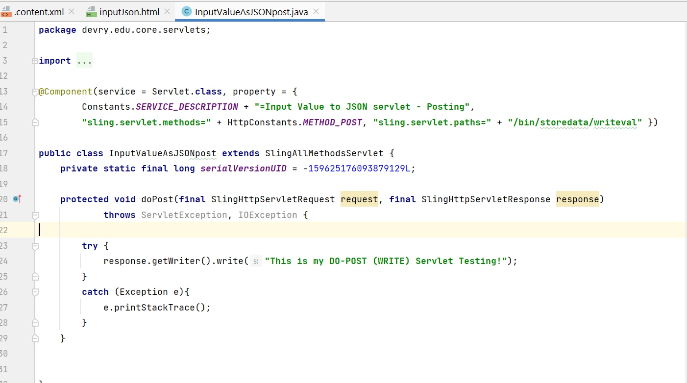 Hi, I am trying to use and explore the doPost Servlet, here I am just writing a text as response, also written an AJAX call in the HTML file of a TEST component and then I am inserting that component to the page. Please refer the below snaps.