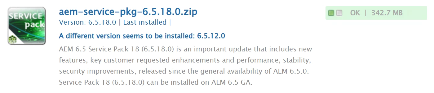 12.09.2024 18:07:10.387 *INFO* [OsgiInstallerImpl] org.apache.jackrabbit.vault.packaging.impl.ActivityLog adobe/cq650/servicepack:aem-service-pkg:6.5.18.0: UPLOAD