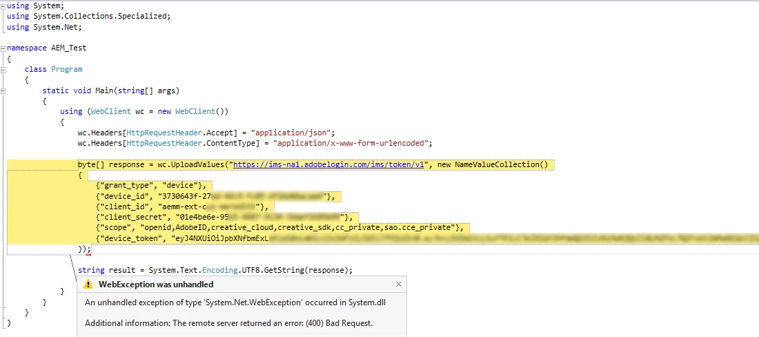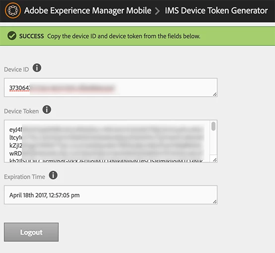 First, I'm able to use my ClientID on https://aex.aemmobile.adobe.com and obtain my Device ID and Device Token.
