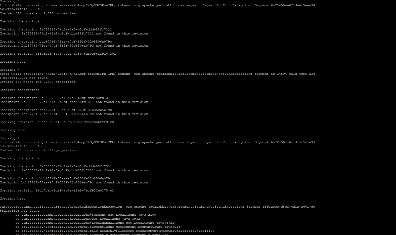 java -Xmx6000m -jar oak-run-*.jar check crx-quickstart/repository/segmentstore/