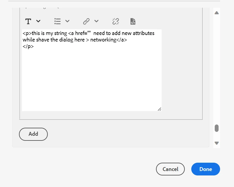 I have multifield dialog with rich text and I need to add some dynamic html attributes in anchor link: