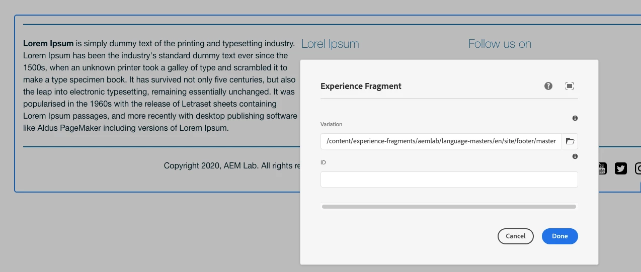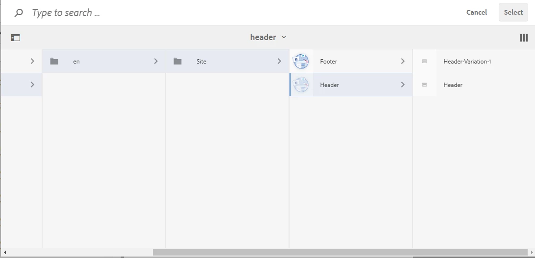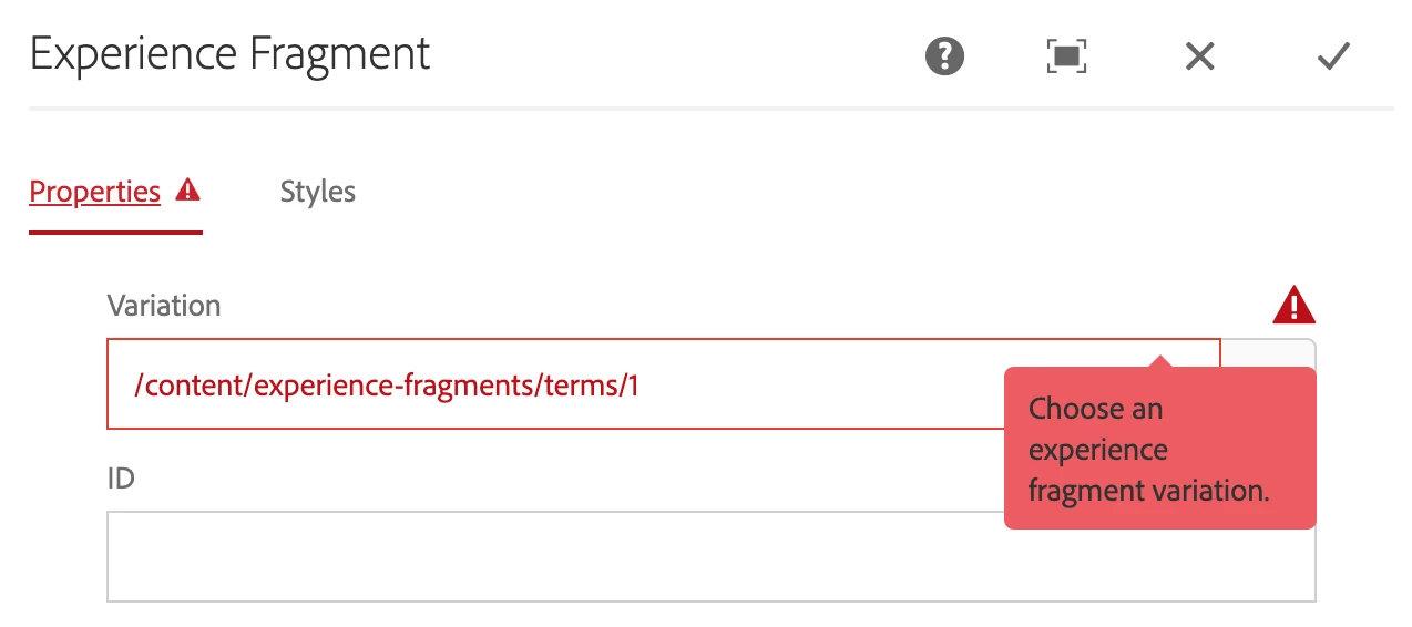 When setting an Experience Fragment from within the Experience Fragment component, the browse file popup for the Validation field doesn’t display the actual Experience Fragments….only the folders