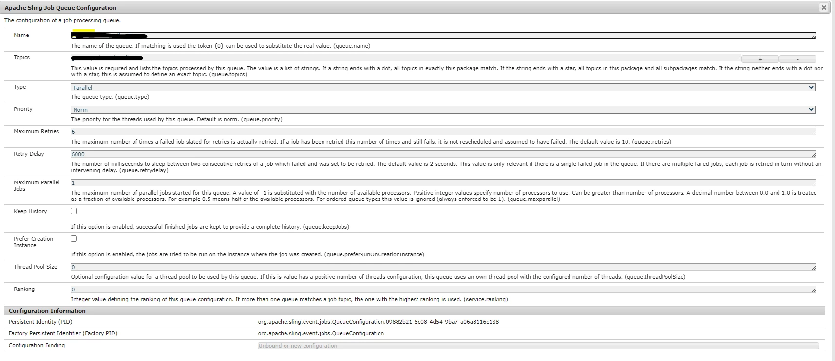 OSGI Configuration for Apache Sling Job Queue Configuration