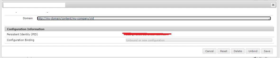 We deleted the config and made some small update in the config file in crx. and observed config got recreated but values are empty and still PID is not linked to config class.