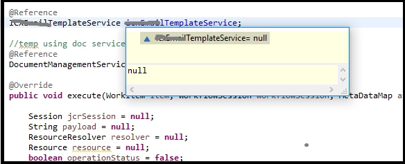 Even when hovering over on the service object declared within my workflow process -it shows null. (refer screenshot below).