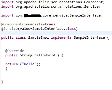 I am facing an issue i created a project of maven archType10 in eclipse and when i upload the bundle on felix console it does not show the service registered over there below is the code what i wrote and screenshot of the bundle on felix,