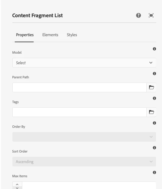 Override Content Fragment List Core Component Dialog