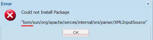 java.lang.NoClassDefFoundError: bom/sun/org/apache/xerces/internal/xni/parser/XMLInputSource
