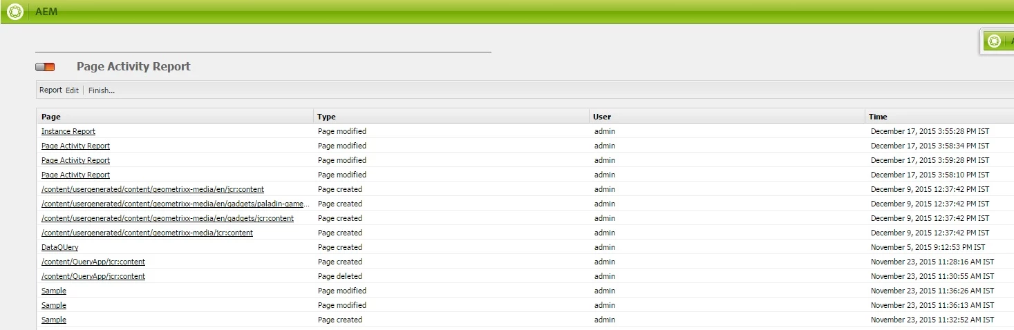 We are getting below exception when we are accessing "Page activity report" under http://localhost:4502/etc/reports/auditreport.html.
