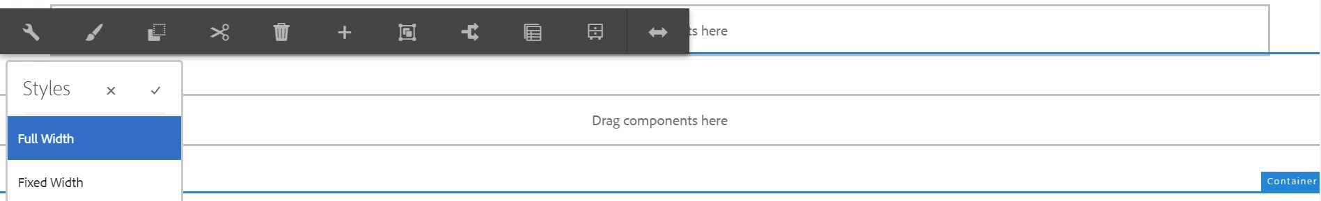 Problem is in full width, the config toolbar for the container comes on the right side of it