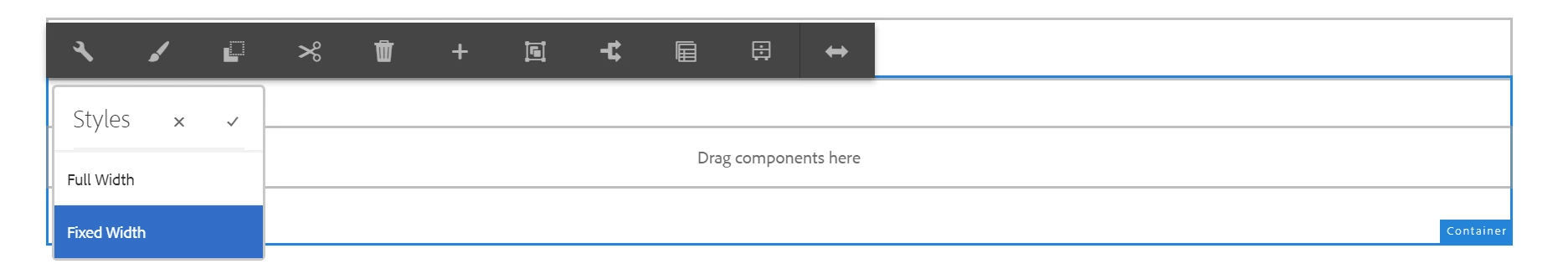 Page Editor, Container Toolbar Alignment Inconsistency