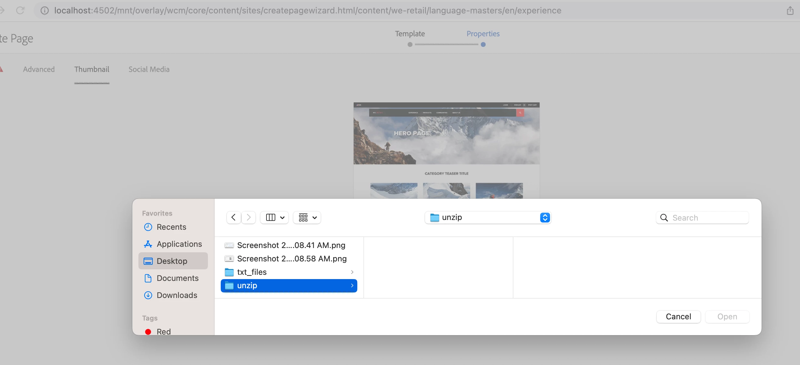 When I create a page I am not able to upload Image in page properties but when i create the page and then open properties it works fine.