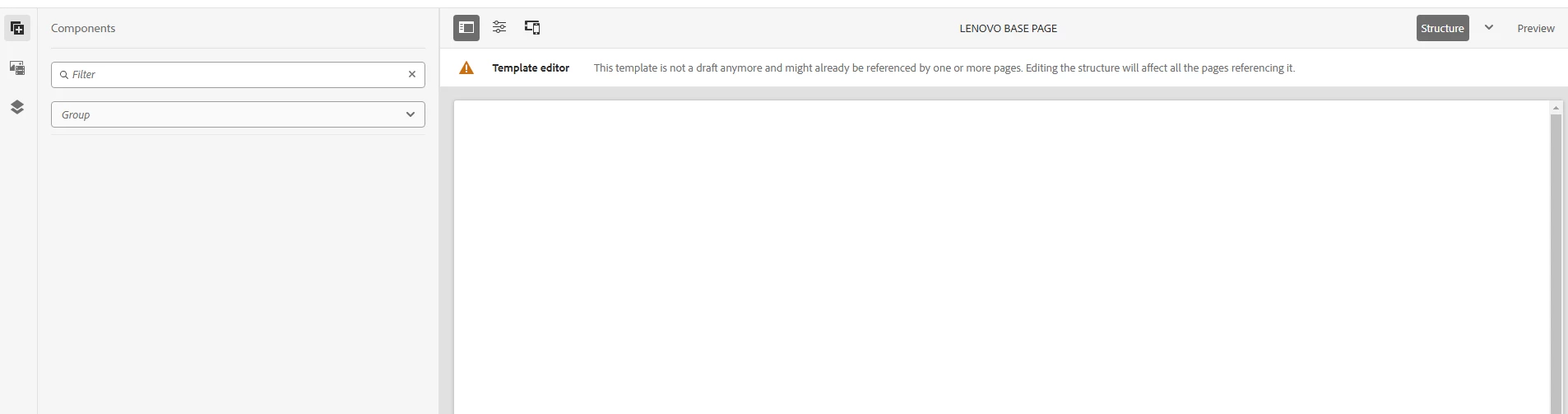 There is no component when I open template editor.