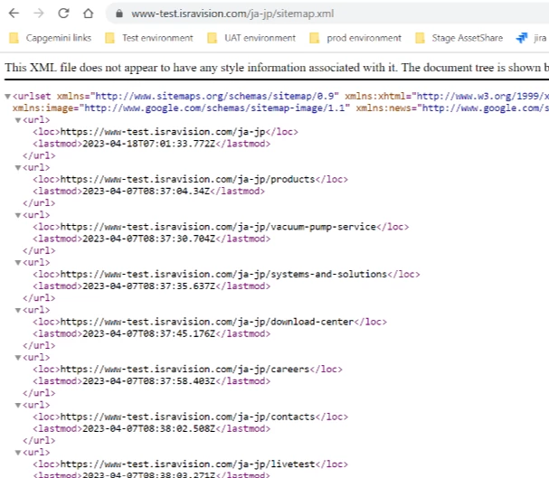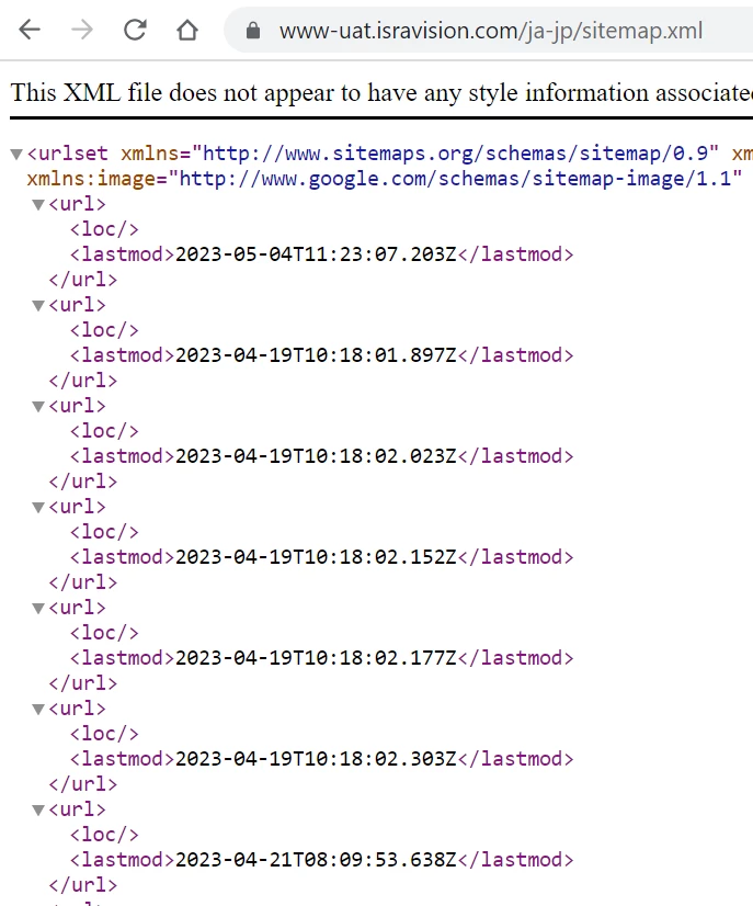 Sitemap isnt generating page urls only giving the last modified date on uat environment but on test its showing page urls with last modified date, can anyone help me.