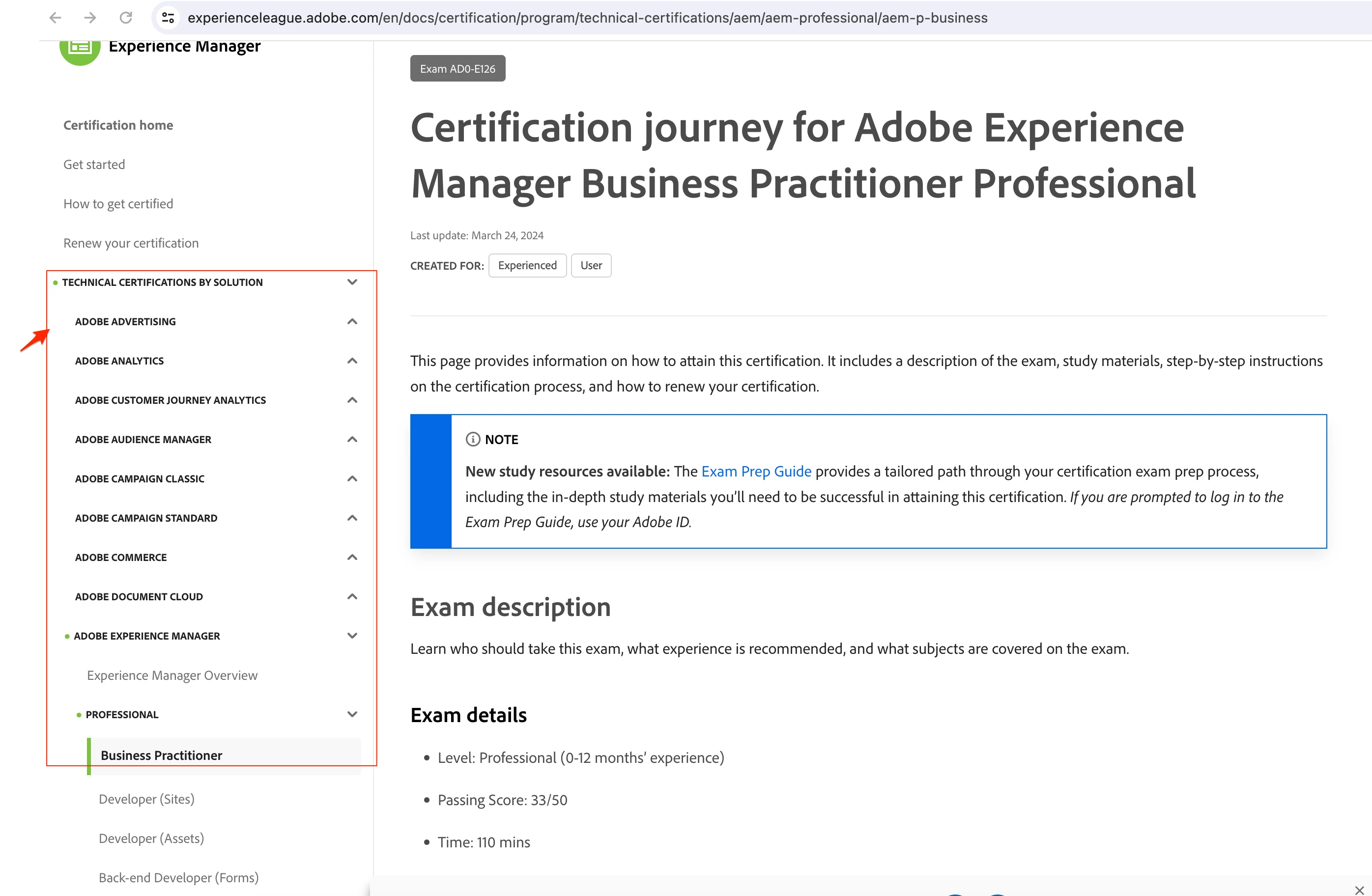 Adobe Experience Manager Sites Business Practitioner - Certified Expert AD0-E121