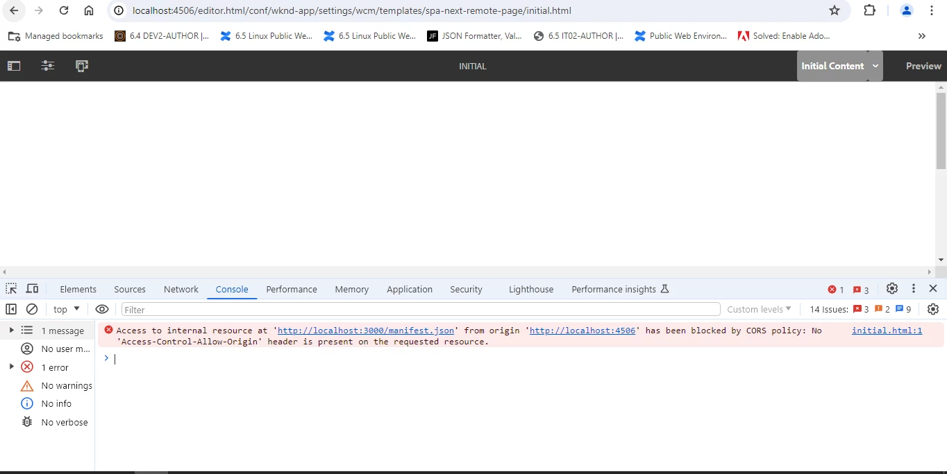 - Parsys is not displaying in initial content of the editable template using RemoteSPA with react . I am using the AEM version 6.5.19 and if i go to the console i see 1 error. Please help me to get resolve this issue.