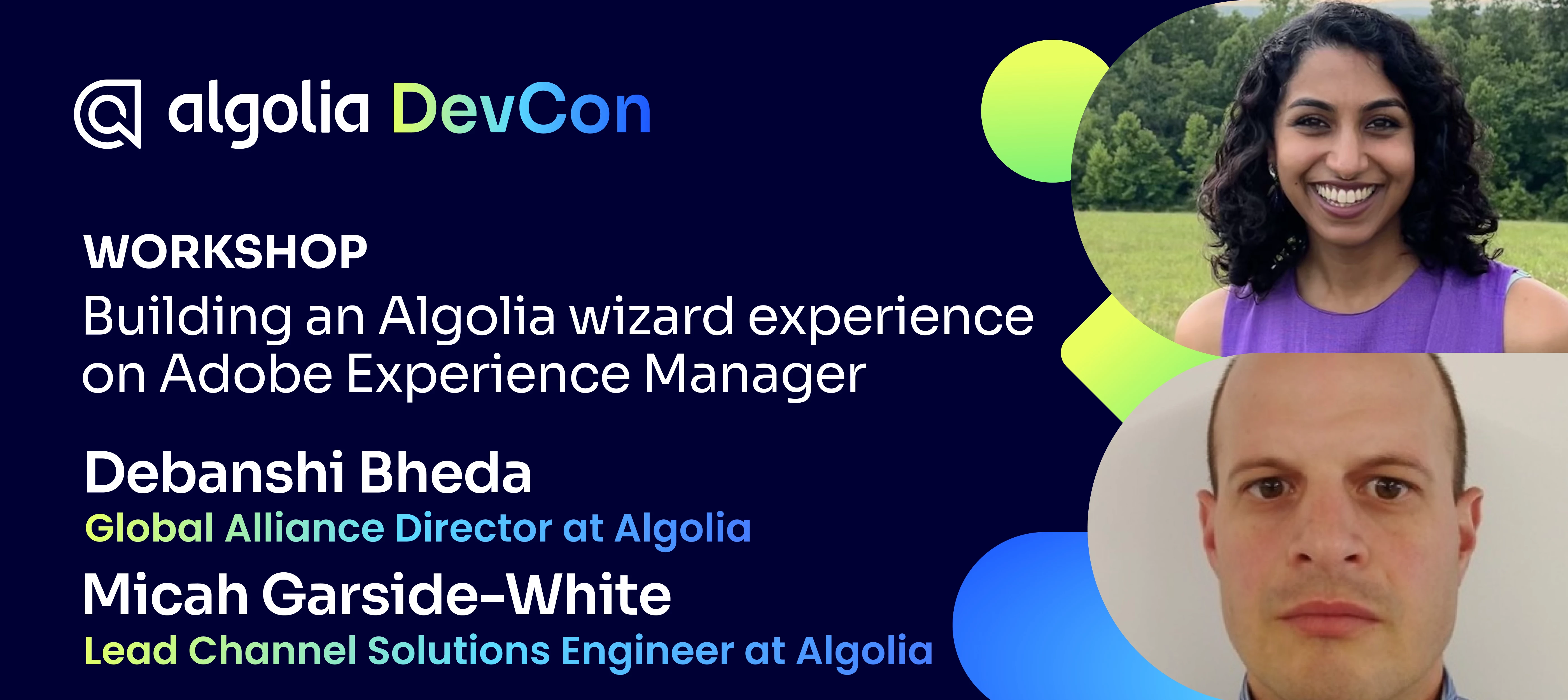 Looking at how to build search experiences into Adobe Experience Manager? Tune into the AEM search workshop on Day 2 of Algolia's developer conference, Algolia DevCon