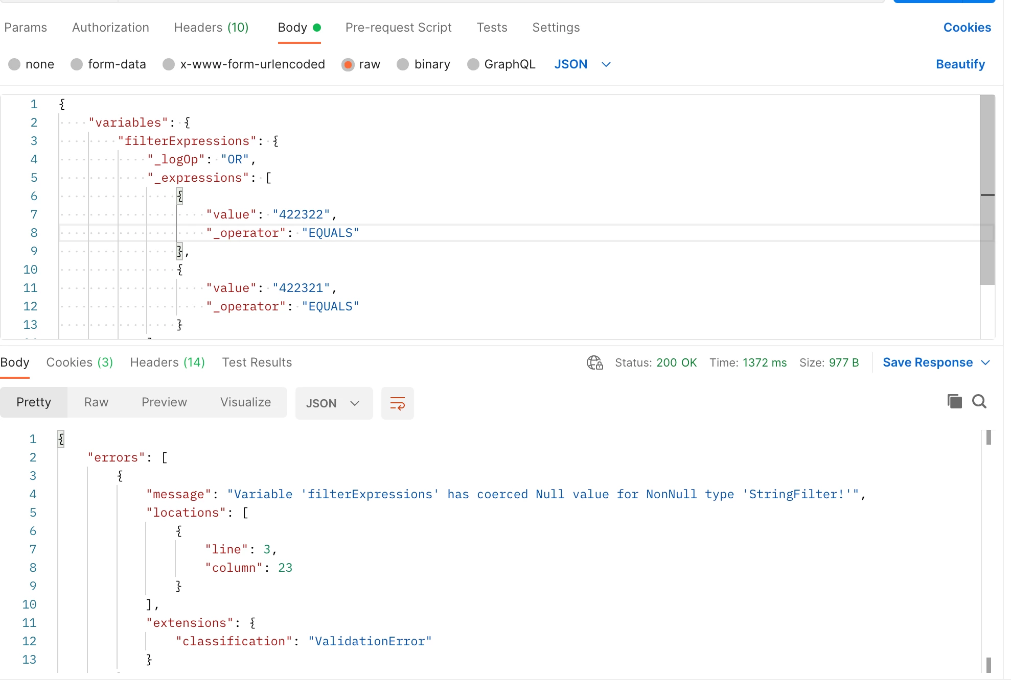 "filterExpressions": {"_logOp":"OR","_expressions":[{"value":"422322","_operator":"EQUALS"},{"value":"422321","_operator":"EQUALS"}]}