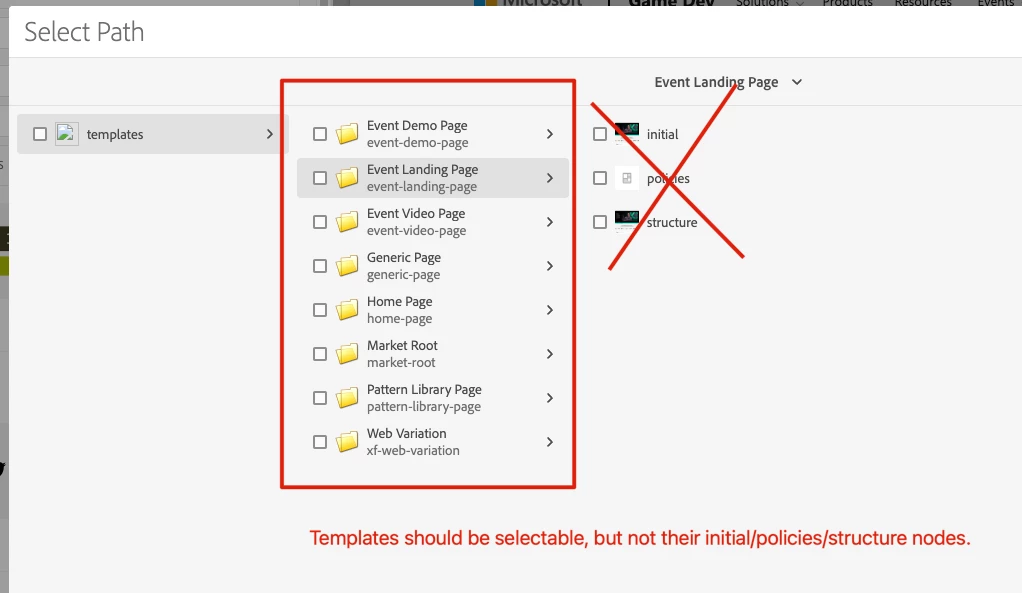 Is there a way that I can restrict this selection to only instances of cq:Template? e.g., I do not want the user to be able to select the "Initial" or "Structure" nodes, only the root page template nodes.