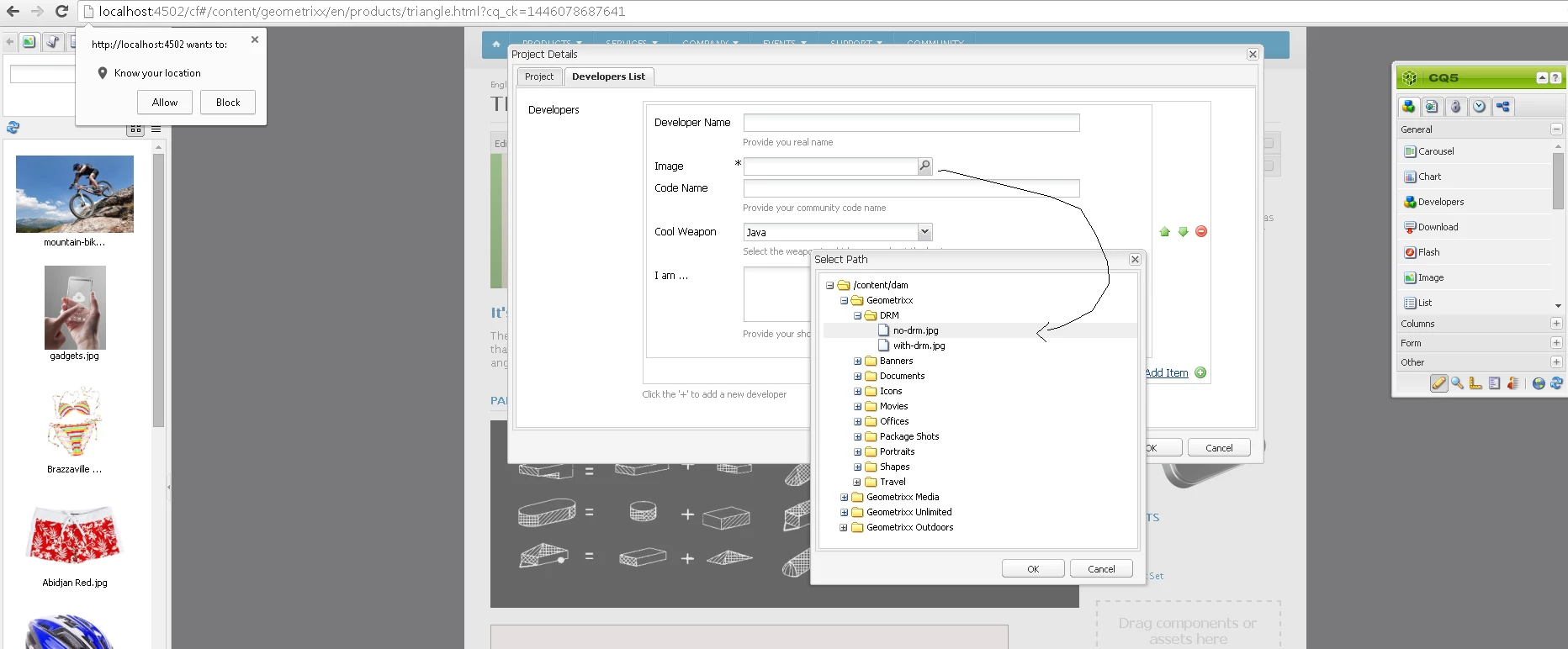 But if we use a path field component for this functionality (we have set the root folder for this structure), the pathfield explorer window is not showing the image nodes.