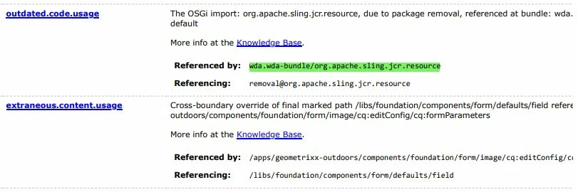 There is only one message which shows oudated.code.usage as below: