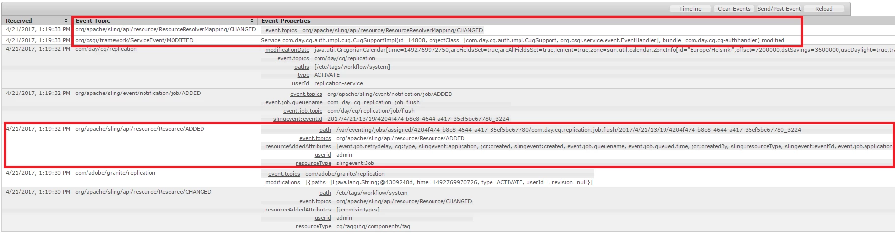 This events are appeared after activation of "/etc/tags/workflow/system" node.