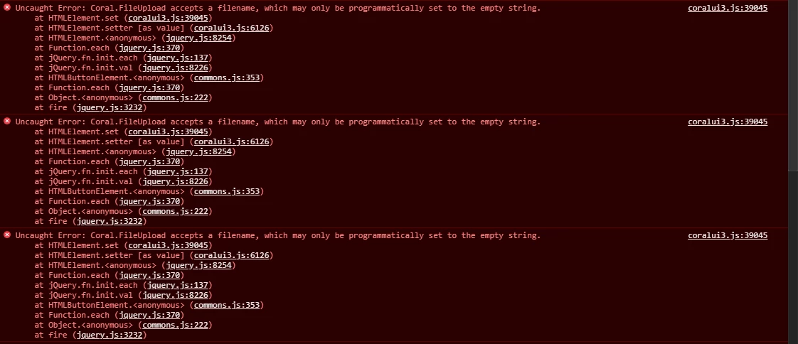 Console errors (not sure that they can affect it because I see these errors every time I open dialog but other fields work good):